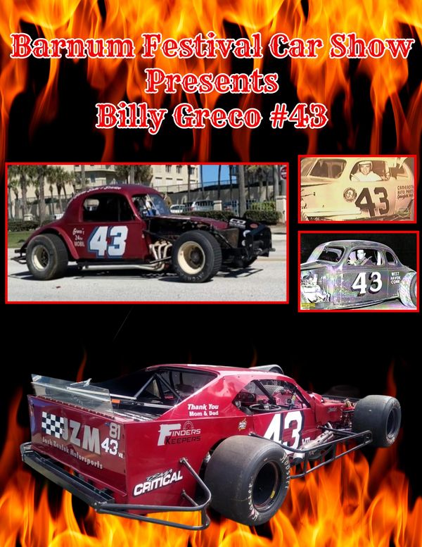 We will have 2 Billy Greco racing cars on display at the Barnum Festival Car Show May 30th